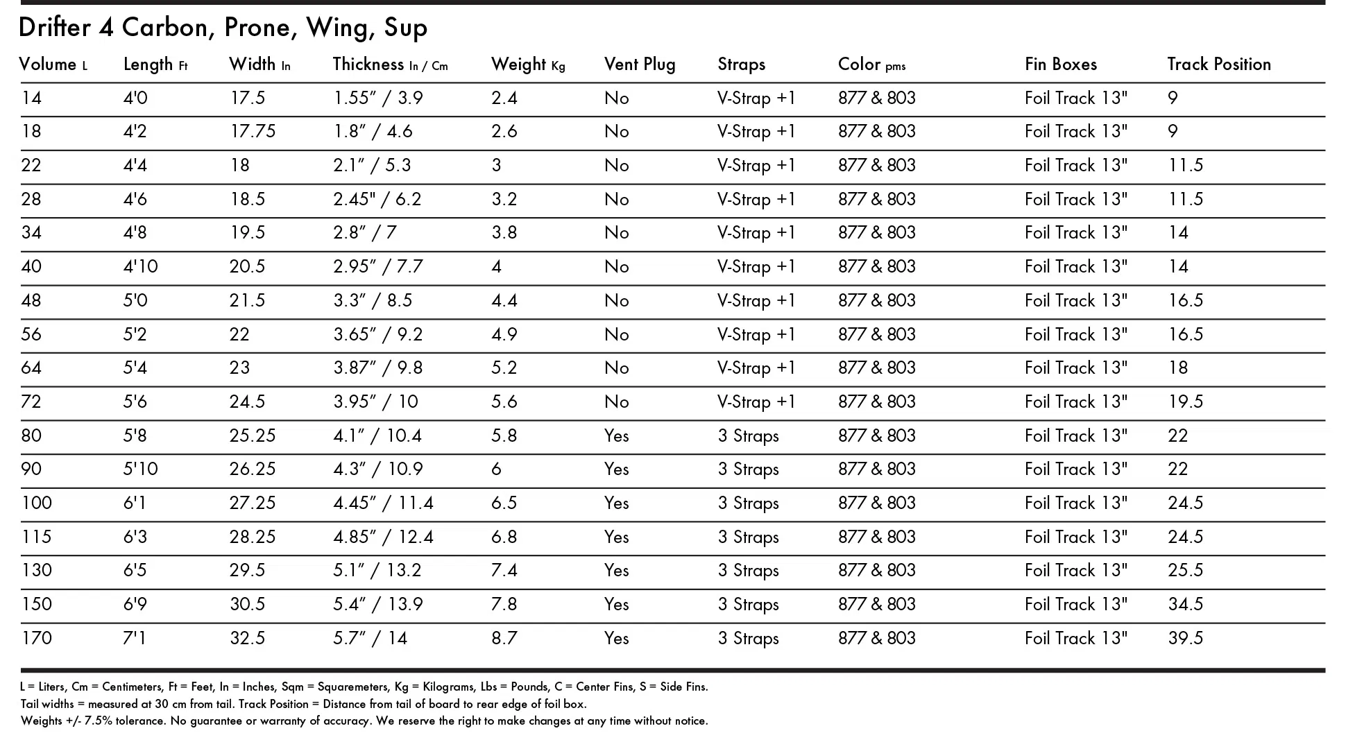 Now in its 4th generation, the tail has a more radical bevel for clearance and maneuverability. The KT Drifter 4 Carbon comes in a huge range of sizes from 14 to 170 liters. Great for electric foil assist.