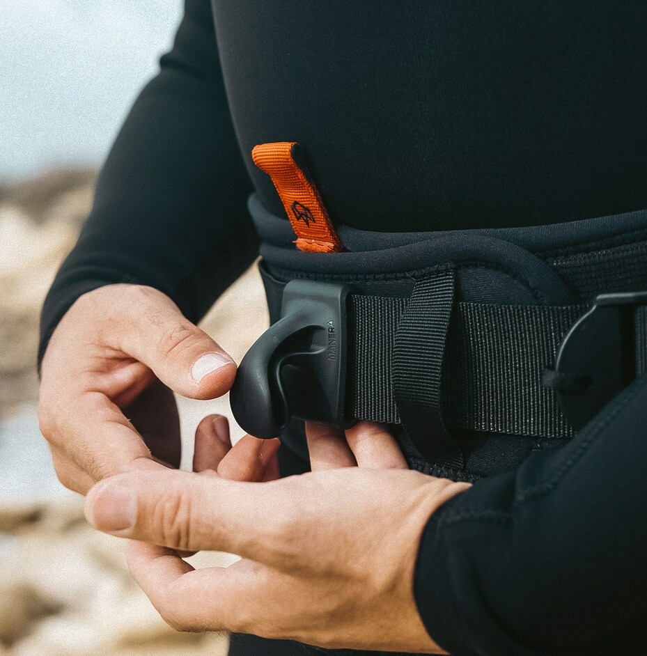 The Manera Wing Hook will help you do just that. It is adaptable to any wing harness/leash belt that has a 50mm large front strap.